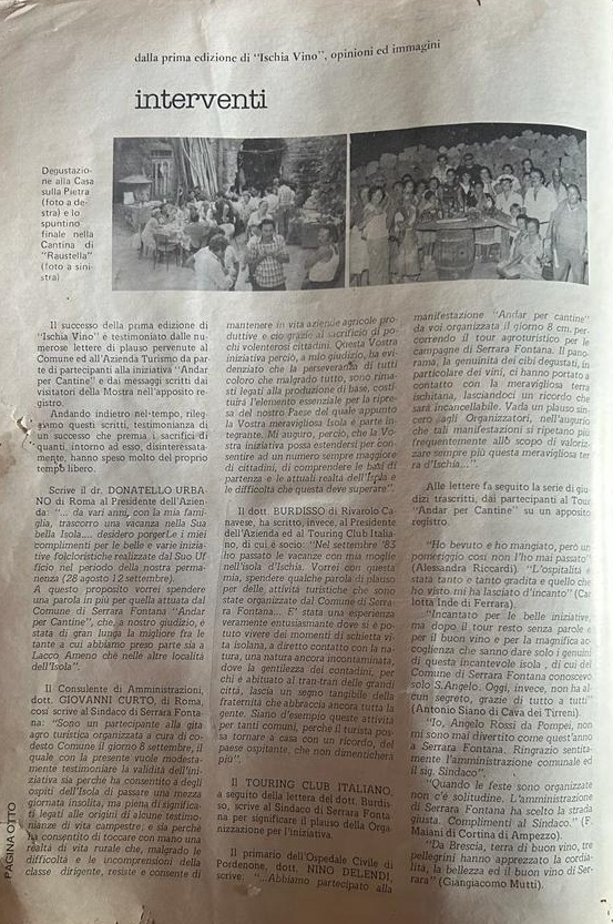 Tale evento all’epoca ebbe un tal successo che, giunsero al comitato organizzatore diverse lettere di apprezzamento dai tanti turisti che, da diverse parti d’Italia e non solo, avevano preso parte all’iniziativa “Andar per Cantine”.