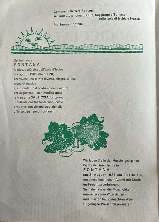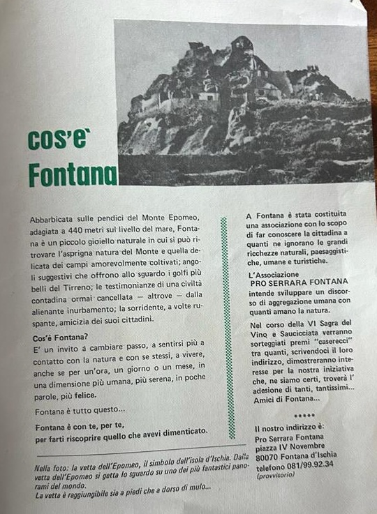 L’organizzazione della sagra dell’epoca era realizzata a cura dall’Associazione Pro Serrara Fontana.