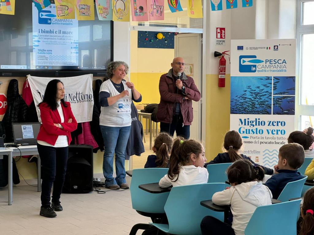 Si è svolto stamattina al plesso scolastico della primaria di Fontana, l’incontro organizzato dall’Area Marina Protetta Regno di Nettuno “I bimbi e il mare” nell’ambito del progetto “Pesca in Campania qualità e tracciabilità“.