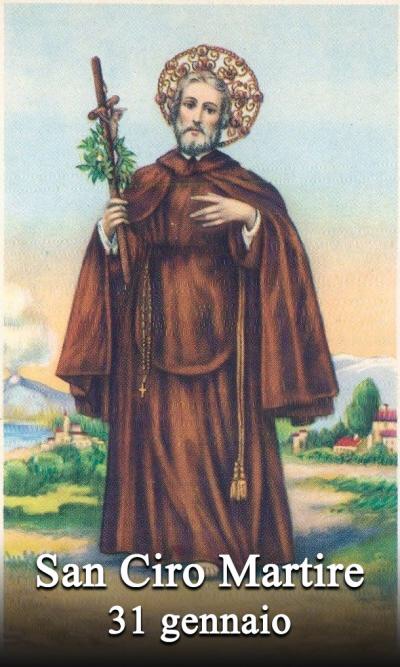 Questo Santo nacque ad Alessandria d’Egitto nel 250 da una famiglia cattolica, studiò medicina, diventò medico e aprì un ambulatorio nella sua città. Svolgeva la sua professione con il titolo di “Anargiro”, ovvero senza argento, questo perché curava gratuitamente le persone povere e consigliava ai malati di cercare conforto nella fede e nella preghiera. Tutto ciò fino all’anno 299, quando sotto l’impero di Diocleziano, tutti i medici alessandrini furono perseguitati perché considerati maghi o stregoni. Ciro quindi per evitare di essere arrestato, in quanto medico, si nascose nel deserto in Arabia Petrea e si diede alla pittura e alla meditazione cambiando anche il modo di essere il medico, in quanto non adoperava più erbe medicinali per curare i malati, bensì affidava i suoi pazienti alla preghiera. Nel 313 ci fu una tremenda persecuzione nei confronti dei cristiani da parte dell’imperatore di Diocleziano che si estese in Asia minore, Palestina fino ad arrivare in Africa. Venuto a conoscenza di tutto ciò Ciro, insieme a un suo amico eremita Giovanni, decisero di ritornare ad Alessandria per dare aiuto e conforto ai fratelli cristiani. Ma, arrivati in città furono scoperti e arrestati e portati al cospetto del prefetto Siriano dove si rifiutarono di rinnegare la loro fede e per questo furono condannati al martirio e decapitati il 31 gennaio del 303. Furono sepolti nella chiesa di San Marco Evangelista e dopo più di un secolo i resti di San Ciro furono trasferiti a Roma e alcuni anche a Napoli dove San Ciro è uno tra i Santi più venerati. Le sue spoglie in un primo momento furono conservate nella chiesa del Gesù Nuovo, finché nel 1776 parte di esse furono trasferiti a Portici, quando il santo fu eletto patrono della città. Anche sulla nostra Isola in questo giorno si festeggia San Ciro nella Chiesa del Ciglio e ai Ischia Porto.