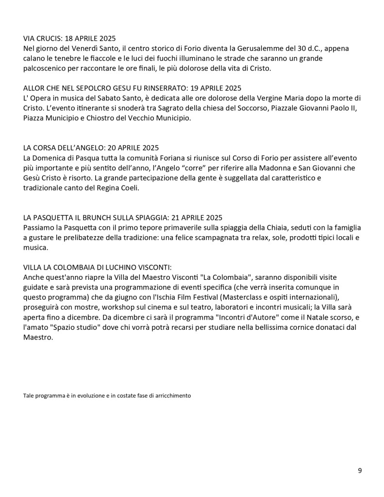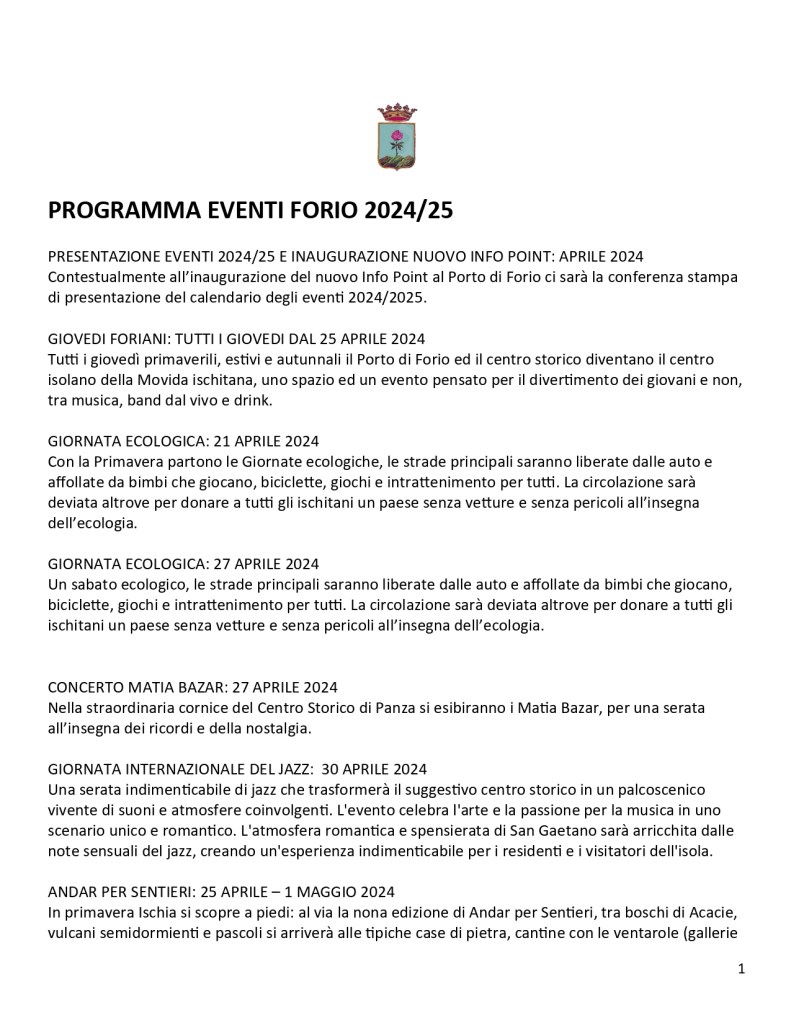 Al via la stagione primaverile e a seguirsi l’estate, l’autunno, l’inverno e di nuovo la primavera per il comune di Forio che inaugura una stagione di eventi ricca di stimoli e di interessi per tutti.