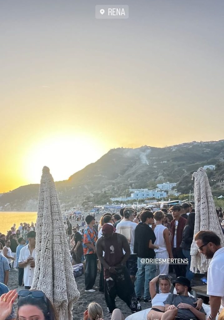 Uno scatto che proviene da una dei luoghi simbolo di Ischia, ovvero la spiaggia dei Maronti dove ad essere immortalato è Mertens mentre si gode un momento di relax su uno dei divanetti del noto locale “Rena”.