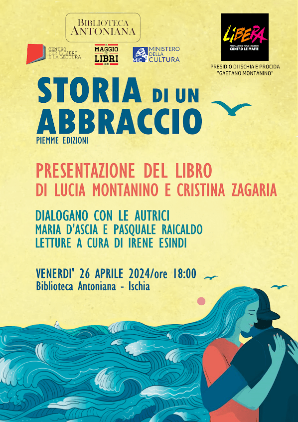 Venerdì 26 aprile scorso, presso la biblioteca Antoniana di Ischia alle ore 18.00, su invito del referente di Ischia e Procida dell’Associazione contro le Mafie “libera” Gaetano Montanino, il gruppo dei “piccoli volontari crescono”, dell’Associazione Disabili Ischia e Croce Rosa Ischia Soccorso, hanno avuto il piacere di assistere alla presentazione del libro “storia di un abbraccio” che racconta la storia di una guardia giurata uccisa il 4 agosto del 2009 a 45 anni durante una rapina. Da qui la storia della moglie Lucia che nel lutto trova spazio per il perdono, dedicandosi ogni giorno alla costruzione di una società libera dalla violenza.