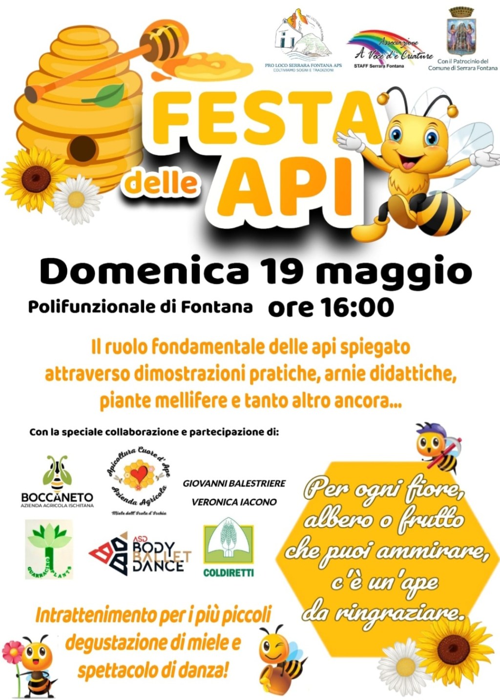 Le Api, instancabili lavoratrici, per le quali da pochi anni è stata istituita la Giornata Mondiale, saranno degnamente festeggiate (tempo permettendo) domenica 19 maggio presso il Polifunzionale di Fontana durante l’evento “Festa delle Api”.