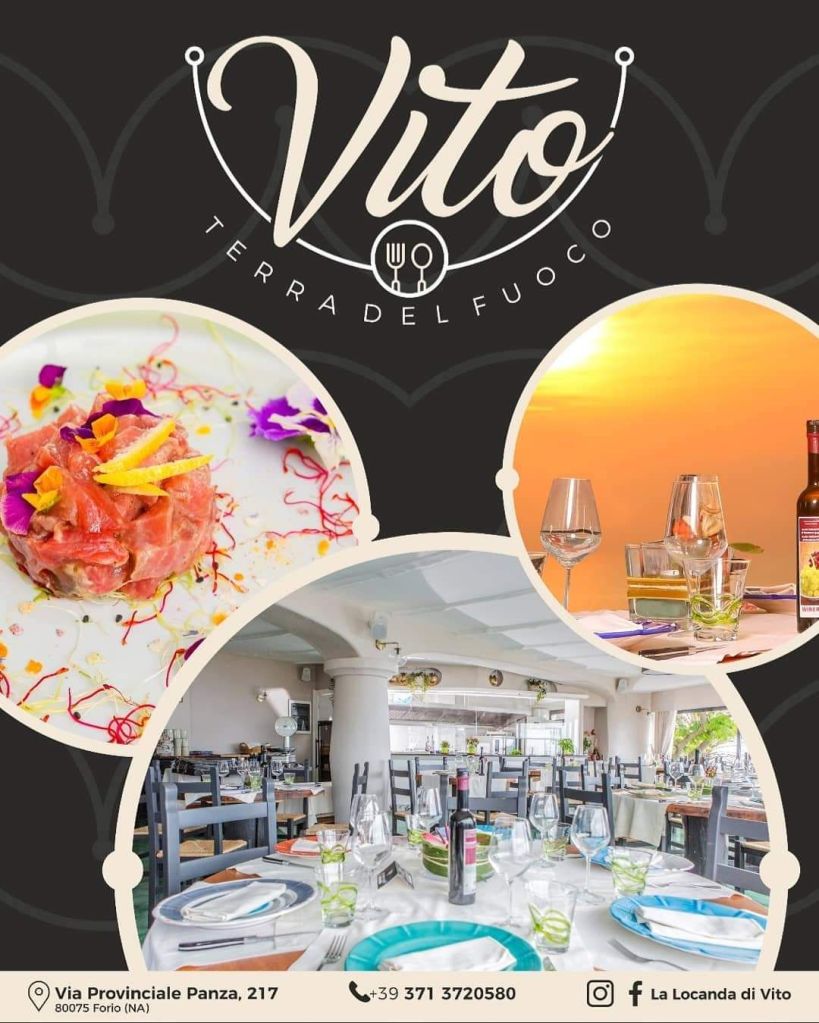 La cucina è affidata alle preziose mani del fratello Mario, executive Chef. La peculiarità del locale è il menù, che varia di giorno in giorno e propone quasi esclusivamente prodotti locali e di stagione. A cominciare dal pesce che Vito compra quotidianamente dai pescatori di fiducia, fino ai prodotti della terra che i contadini dell’isola forniscono. Oltre al gustoso sapore del cibo, si può godere di un panorama dai tramonti mozzafiato che solo Forio può offrire. Il tutto accompagnato dalla preziosa professionalità, competenza e gentilezza di uno staff superlativo.