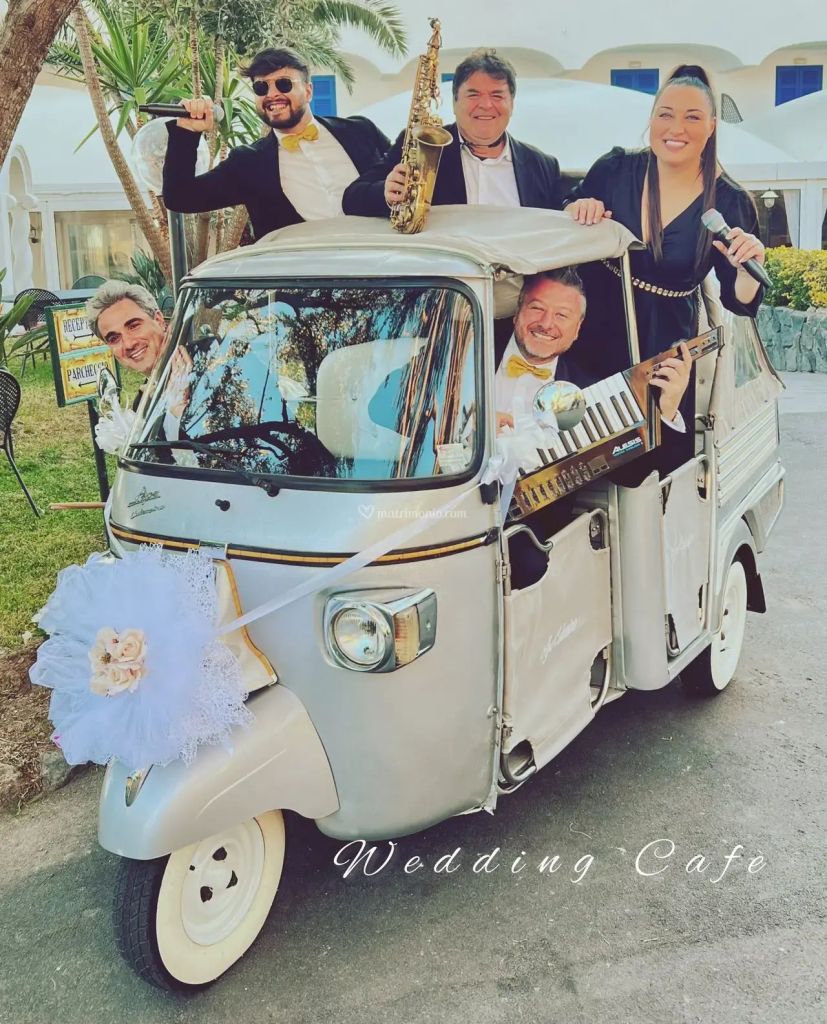 Wedding Cafè la band perfetta per un ricevimento indimenticabile! Suoneremo dal vivo i brani più belli del panorama musicale italiano ed internazionale, creando un’atmosfera elegante e raffinata. Ci prenderemo cura di esaltare ogni istante del vostro evento, adeguando il sottofondo musicale ad ogni diverso momento del ricevimento, soddisfacendo così le preferenze espresse da voi sposi. Vantando un organico composto da musicisti professionisti con esperienza ventennale, maturata in contesti nazionali ed internazionali, la band propone un repertorio che varia dal Jazz al Pop, dalla Bossa Nova al Funky alla Dance 70/80/90 ed attuale, curato nella selezione e negli arrangiamenti per assicurare un evento all’insegna della musica di qualità.