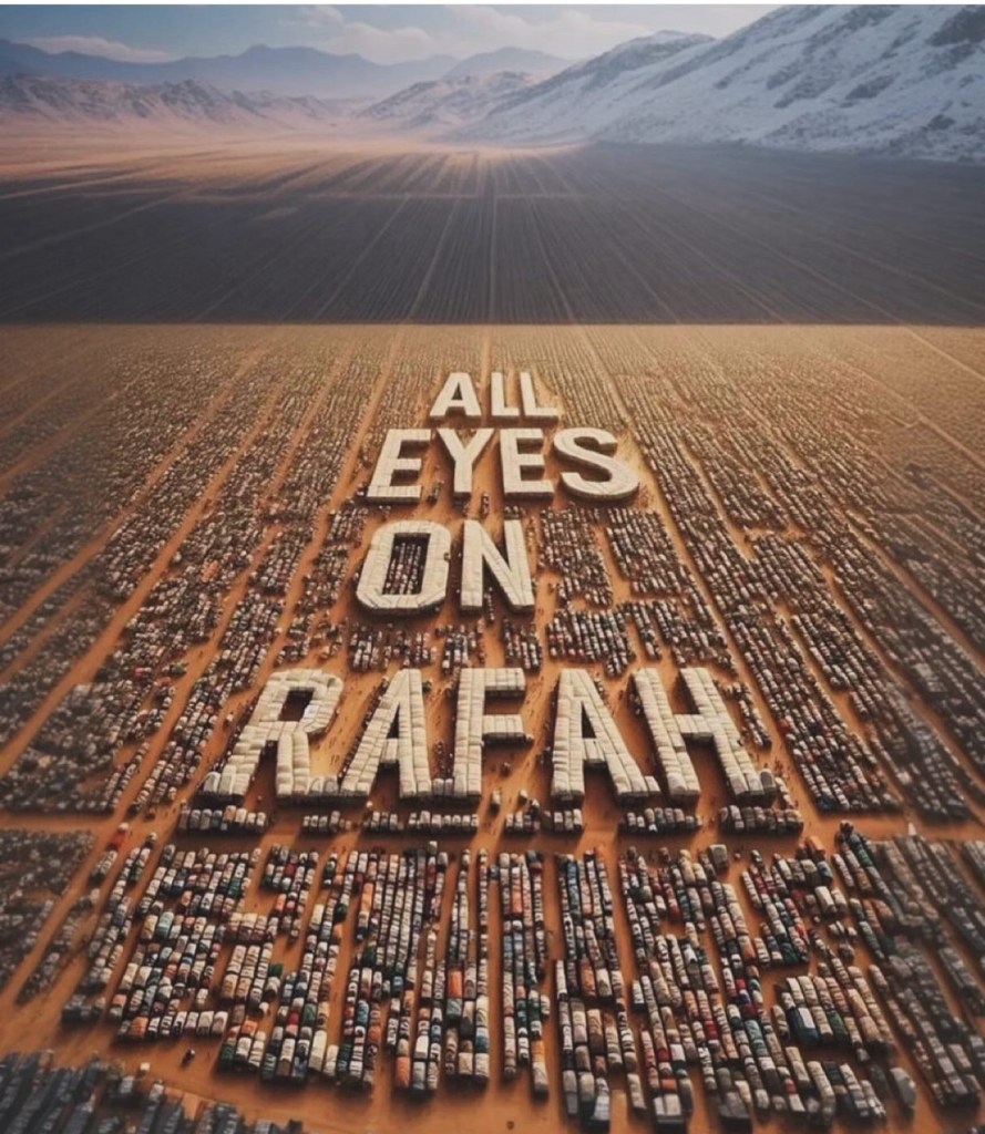 “All eyes on Rafah”: una richiesta inequivocabile che richiama l’attenzione su quello che sta succedendo a Rafah, bersaglio dei raid israeliani che continuano a mietere vittime tra gli occupanti dei campi profughi.