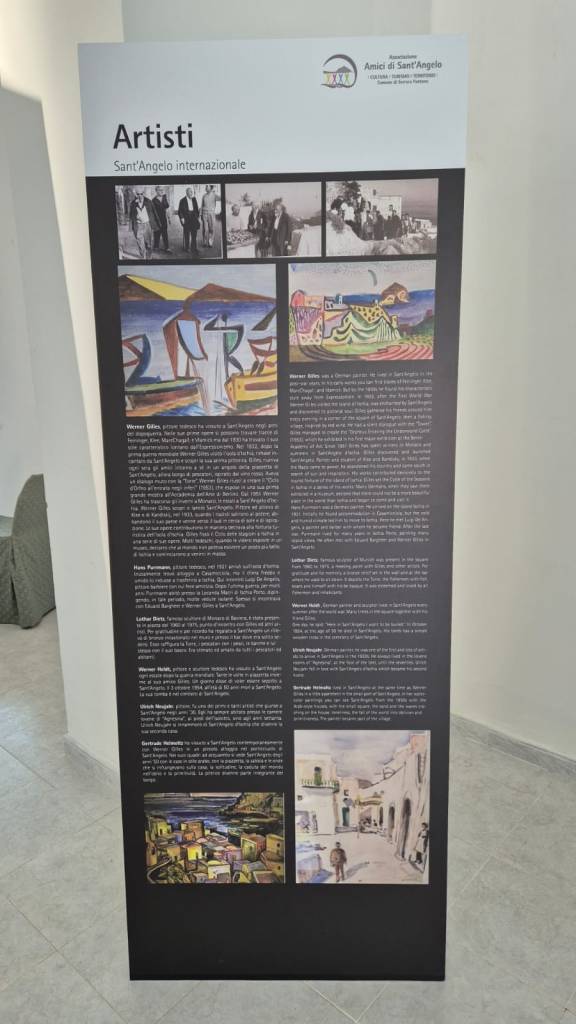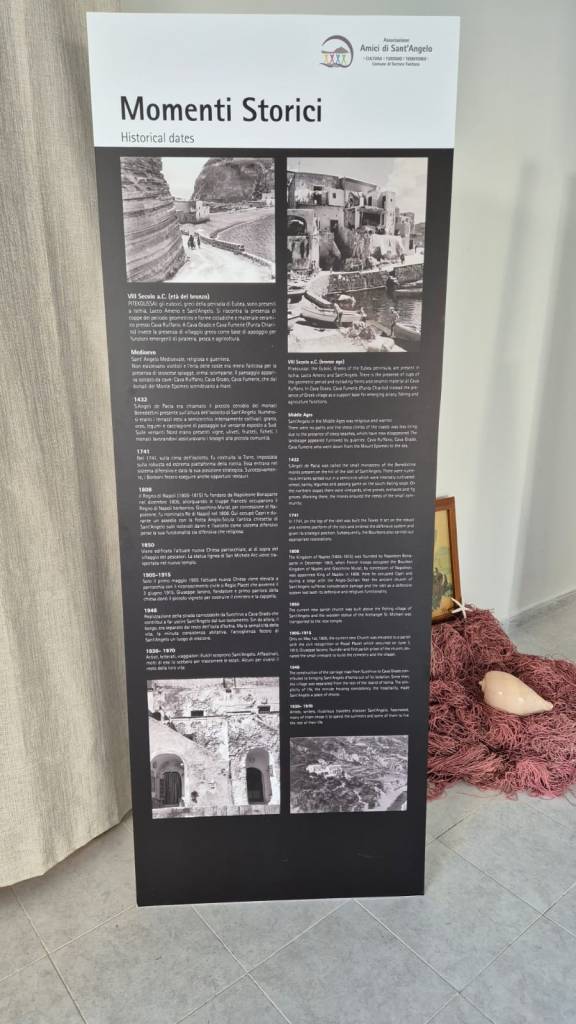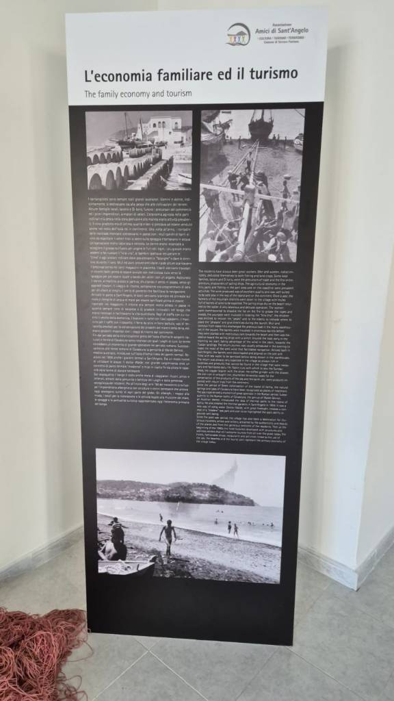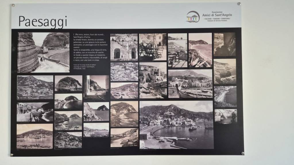 Tra immagini di persone simbolo di una Sant’Angelo lontana, ma non troppo, di momenti di vita locale, di paesaggi di un tempo e dei tanti viaggiatori che hanno soggiornato a Sant’angelo, la mostra è un piccolo scrigno di racconti e tesori su come Sant’Angelo sia diventata negli anni, grazie alla sua semplicità e calorosa accoglienza, luogo di riferimento del Jet Set mondiale mantenendo però inalterate le sue radici di popolo di marinai e pescatori.