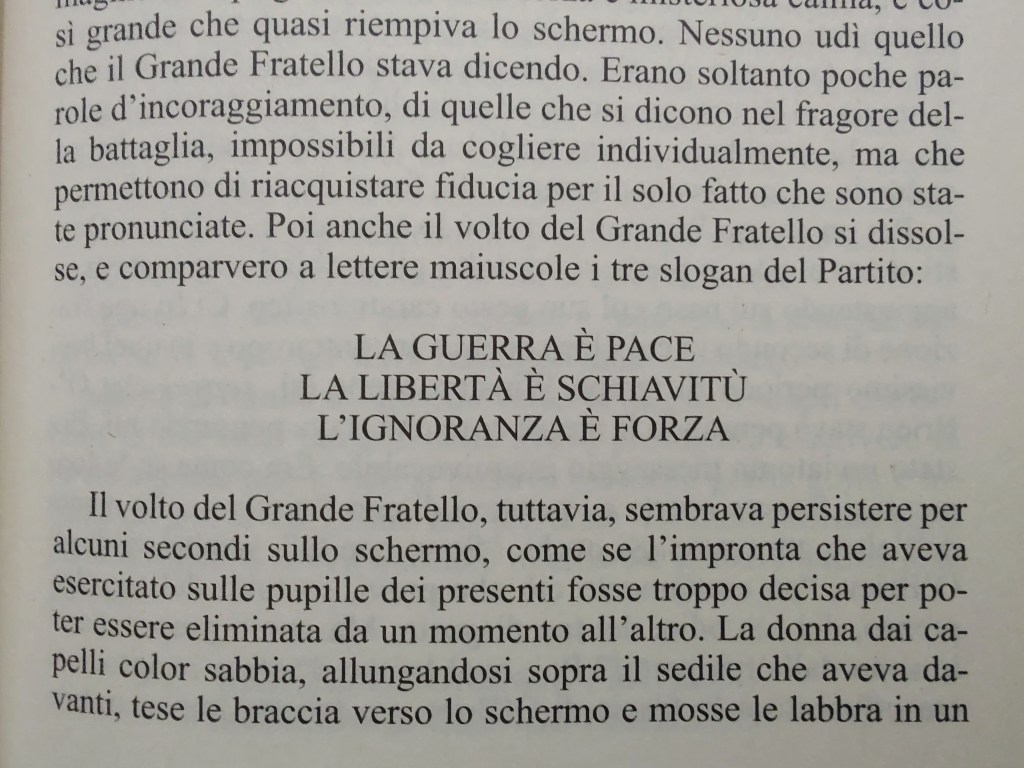 1984 potrebbe far venire l’ansia di vivere, è vero, tuttavia è uno di quei scritti che va in ogni caso letto almeno una volta nella vita e voglio condividere tre cose importanti che esso ha lasciato a me:
