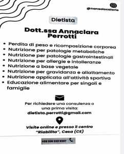 Avere una dieta equilibrata dovrebbe essere una prerogativa a carattere di indispensabilità per la vita di ognuno di noi. Noi di Serrara Notizie, sempre attenti tra le altre cose a quei servizi che possano essere di assoluto beneficio alla salute di ognuno, consigliamo una professionista del settore della nutrizione, dietista che fa’ studio su terraferma, a Cesa ed a Frattamaggiore ma anche on-line.