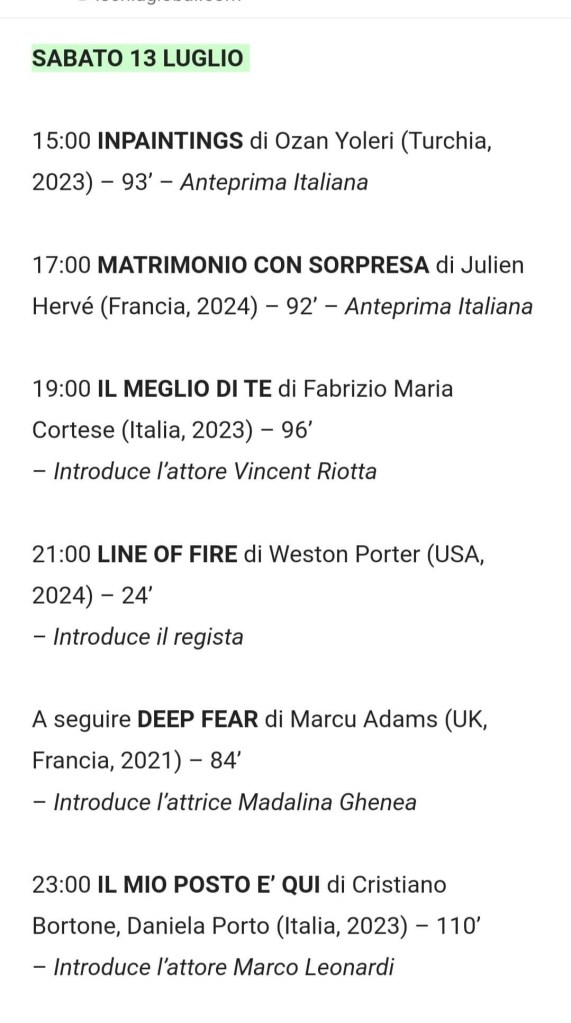 - Cineteatro Excelsior Ischia sabato 13 luglio: Ischia Global Festival;