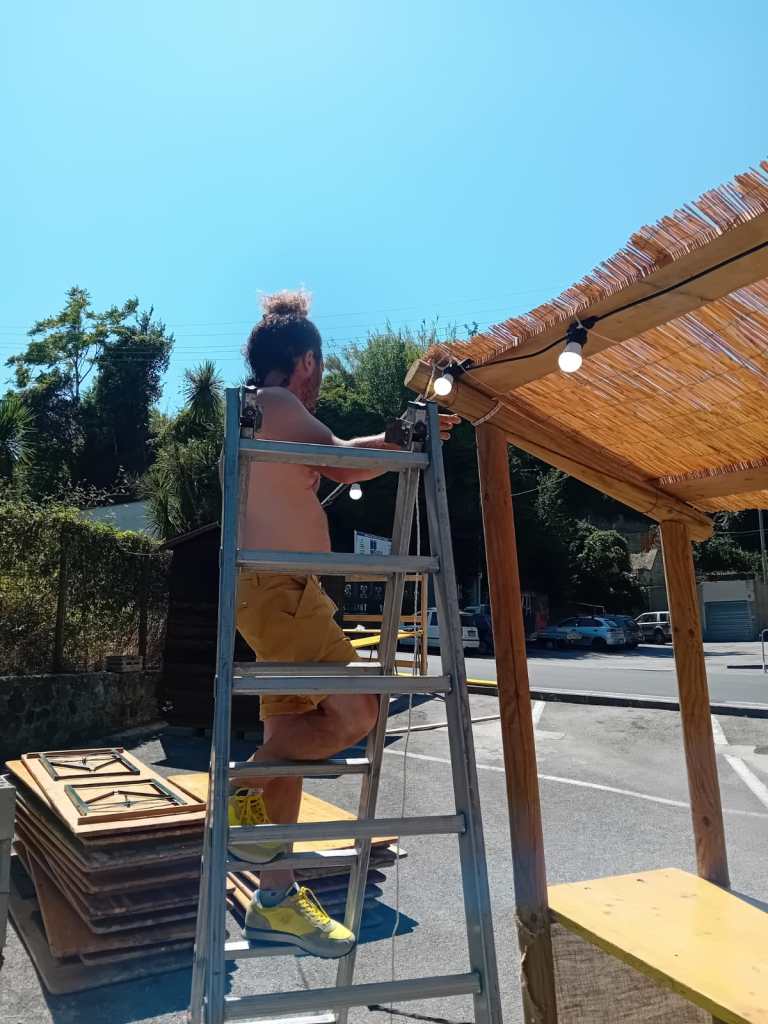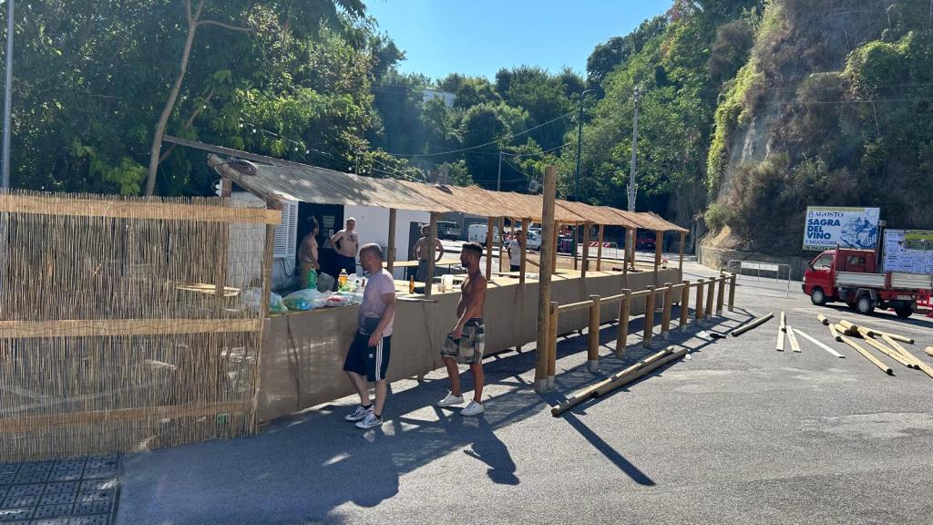 Da subito, giunti in piazza, abbiamo notato un gran fermento! Tutti all’opera nella realizzazione dei banchi, dei passamani, del palco e di tutto quanto servirà ad allietare la serata di domani. Ma ciò che ci ha incuriosito di più è stata la presenza di tanti ragazzi, tanti giovani che, sotto l’attenta guida di Agostino alias “Miscillo” presidente della Proloco di Serrara Fontana, del segretario Roberto Monaco nonchè di Michele Mattera della macelleria da Pino non sentivano alcuna fatica e sudore, eppure il caldo era tanto!
