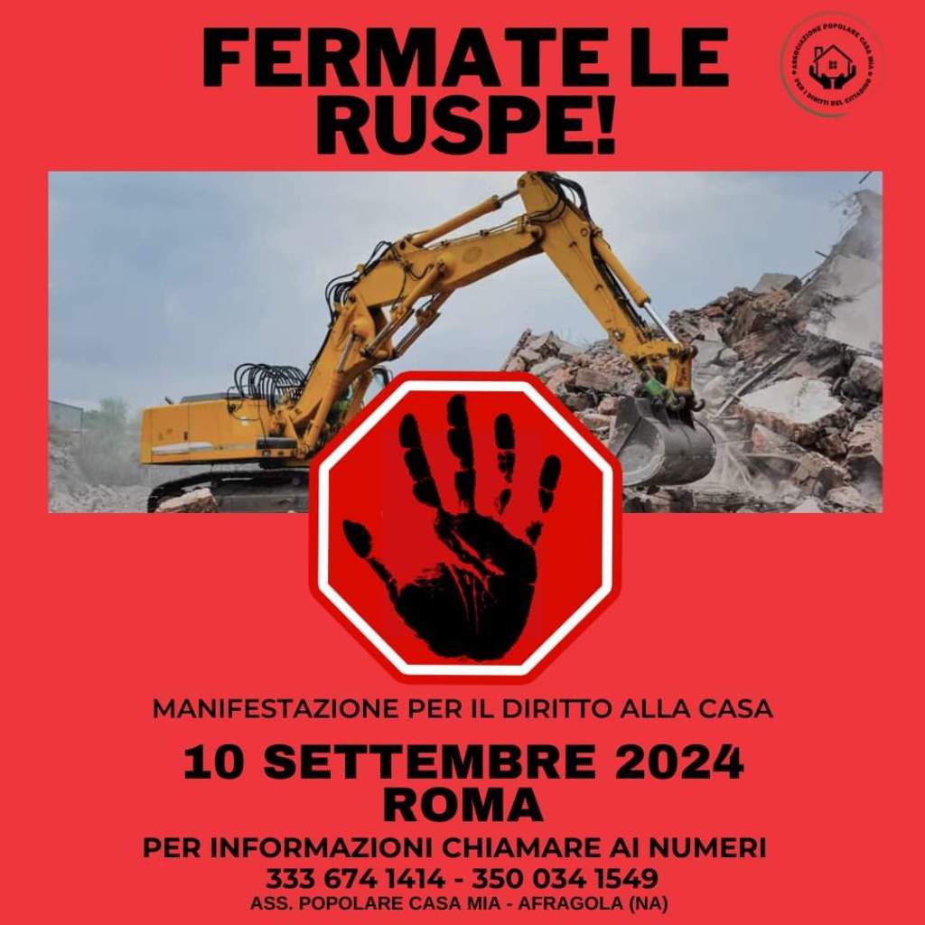 Ed è in questo contesto che l’Associazione Popolare Casa Mia che da tempo lotta per il diritto alla casa, ha indetto per martedì 10 settembre una imponente manifestazione a Roma al fine di dare un segnale alla politica nazionale puntualizzando che è impensabile demolire tante abitazioni, seppur abusive, che sono un tetto per tante famiglie e che nella maggior parte dei casi si trovano inserite da decenni nel tessuto urbanistico locale esistente.