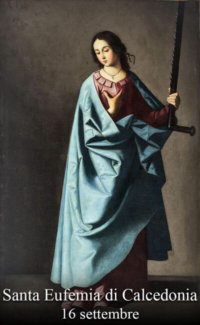La tradizione racconta che venne uccisa ma, anche che i leoni dopo aver mangiato la sua mano destra si fermarono e lasciarono intatto il resto del corpo della giovane Eufemia come se ne avessero compreso la Santità.