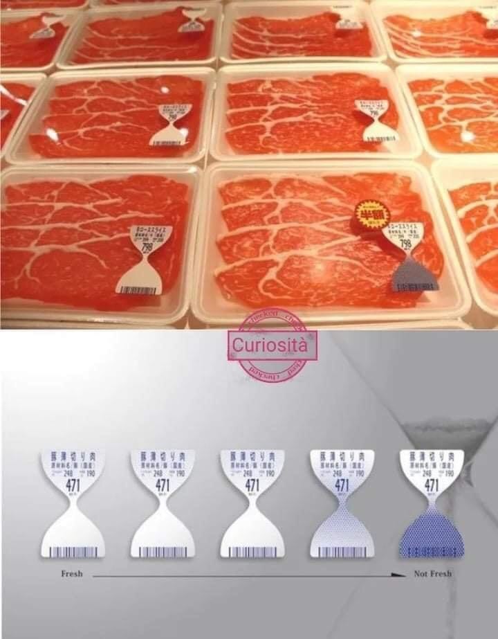Queste etichette di carne reagiscono all’ammoniaca, diventando un chiaro indicatore del deterioramento della carne. Una volta che diventa completamente blu, il codice a barre non può più essere scansionato per la vendita.