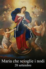 La devozione al quadro di “Maria che scioglie i nodi” è legata a una storia diversa dalle solite apparizioni della Madonna ma bensì si riconduce a un episodio di vita quotidiana.