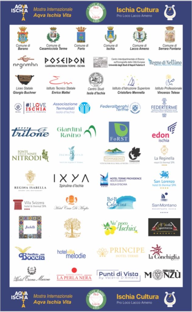 Un ampio ringraziamento va alle numerose associazioni partner e agli sponsor che hanno reso possibile tutto questo: Comune di Lacco Ameno, Casamicciola, Ischia, Barano, Serrara Fontana, Forio, Cirice, Parco Termale Negombo, Giardini Poseidon, Terme Nitrodi, AMP Regno di Nettuno, Centro Studi Ischia, Biblioteca Antoniana, Liceo Buchner, ITC E.Mattei, IPS C.Mennella, IPS Telese, FedralberghiIschia, I Love Ischia, Associazione Termalisti, Federalberghi Terme, Fedeterme, FoRST, Edon Ischia, Hotel Tritone, Giardini Ravino, Ischia Spaeh, Vini Tommasone, Tommasone Cosmetics, Hotel Terme Providence, Hotel Terme San Lorenzo, Hotel Terme La Reginella, Hotel Terme San Montano, Hotel Terme Regina Isabella, Hotel Casa Di Meglio, Ischia Spaeh, Ixya Cosmetici ischitani, Beb Celestina, Hotel Villa Svizzera, Ristorante Al Vecchio Capannaccio, La Conchiglia, Hotel Terme Principe, Hotel Villa Melodie, Ischité,Bio Natural, Nu Poco e Ischia, Panificio Boccia, La Perla Nera Gioielleria, Punti di Vista, Monzù Food eBar.