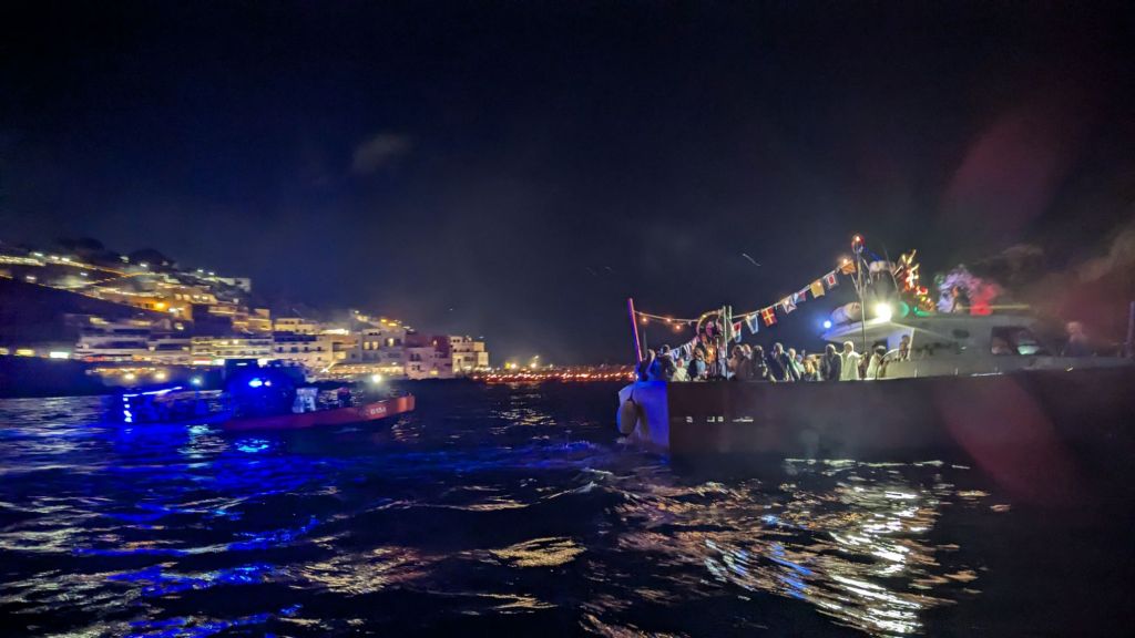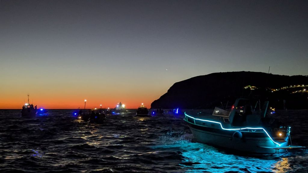 Il giorno successivo, nel tardo pomeriggio, invece accade di consueto qualcosa di particolare ed unico nel suo genere: la statua del santo viene portata su un peschereccio e la processione si avvia quindi per mare nello specchio di acqua compreso tra Punta Chiarito ed i Maronti. I fedeli seguono quindi anche loro il santo con le loro imbarcazioni. I vari esercizi commerciali, alberghi e ristoranti omaggiano il passaggio della statua con degli eccezionali fuochi d’artificio visibili addirittura dal belvedere di Serrara Fontana.