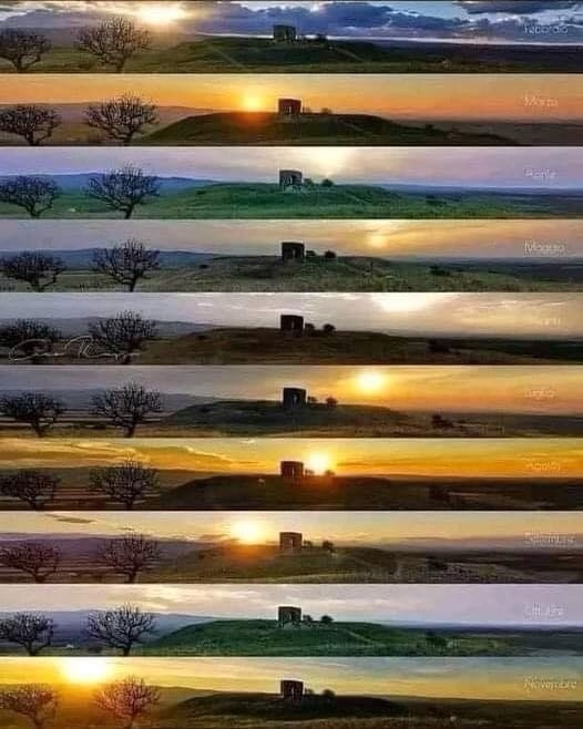 12 foto del sole, una al mese, stesso posto, stessa ora.