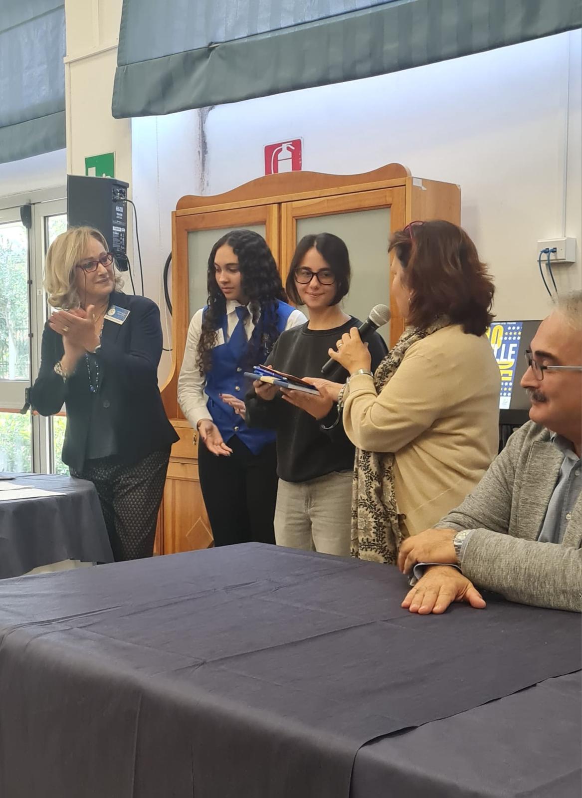 E infine è stata anche l’occasione da parte del co-organizzatore e main sponsor dell’evento, Editore della nostra testata giornalistica Camillo Buono, consegnare un attestato di stima e ringraziamento al Preside Prof. Mario Sironi, e al suo Istituto che, in occasione dell’evento “Diamo Gusto al Solidale” realizzato nell’incantevole scenario della “Torre di Guevara” il 30 maggio scorso, contribuirono egregiamente nel prestare il servizio di accoglienza degli ospiti.