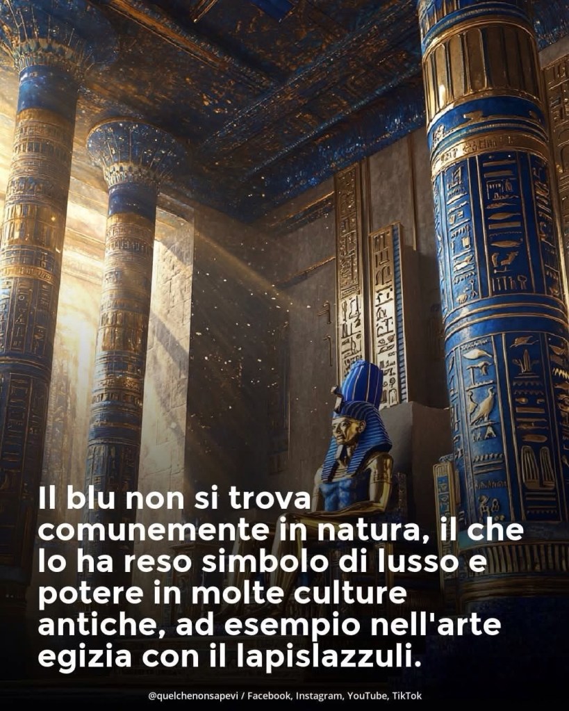 Gli antichi Egizi consideravano il lapislazzuli, una pietra blu profondo proveniente dall’Afghanistan, talmente prezioso da utilizzarlo solo per gli oggetti più importanti e nelle tombe dei faraoni. Nel Medioevo europeo, il blu oltremare ricavato da questa pietra era riservato alle opere più prestigiose ed era simbolo di nobiltà, santità e virtù.