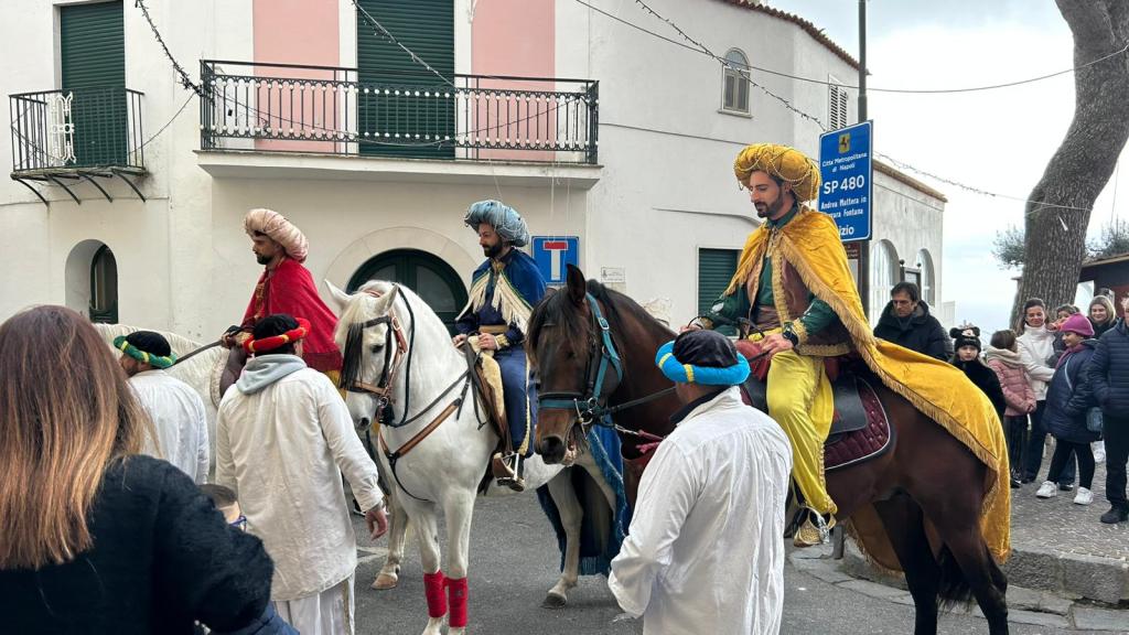 La piazza, che si affaccia sulla chiesa, era già in fermento sin dalla mattina. Tanti bambini si sono radunati, non solo per partecipare alla Santa Messa delle 11:00, ma soprattutto per vedere da vicino i tre Re Magi, che giungevano maestosi a cavallo da uno degli scorci panoramici più suggestivi dell’isola. L’arrivo dei tre cavalieri, vestiti nei loro abiti regali e accompagnati dai loro splendidi destrieri, ha suscitato una grande emozione nei presenti.