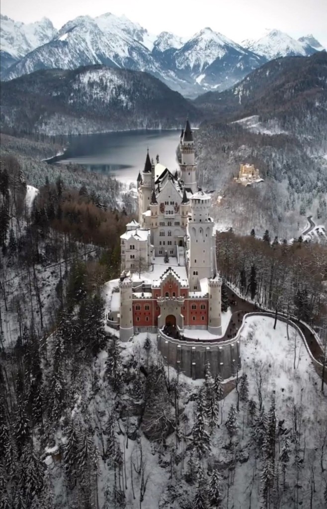 Castello Neuschwanstein, Schwangau, in Algovia, distretto governativo bavarese di Svevia, Germania.