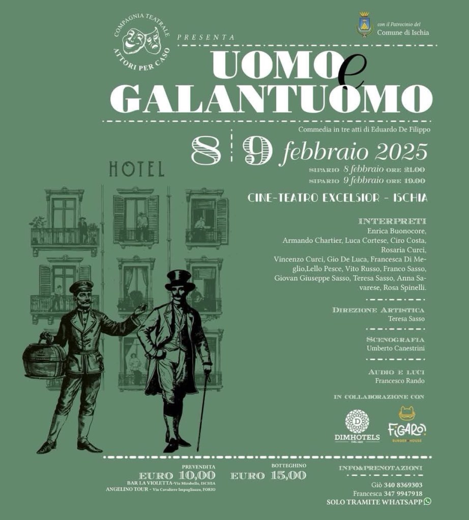 - Cineteatro Excelsior Ischia sabato 8 febbraio: Uomo e Galantuomo unico spettacolo h21:00;