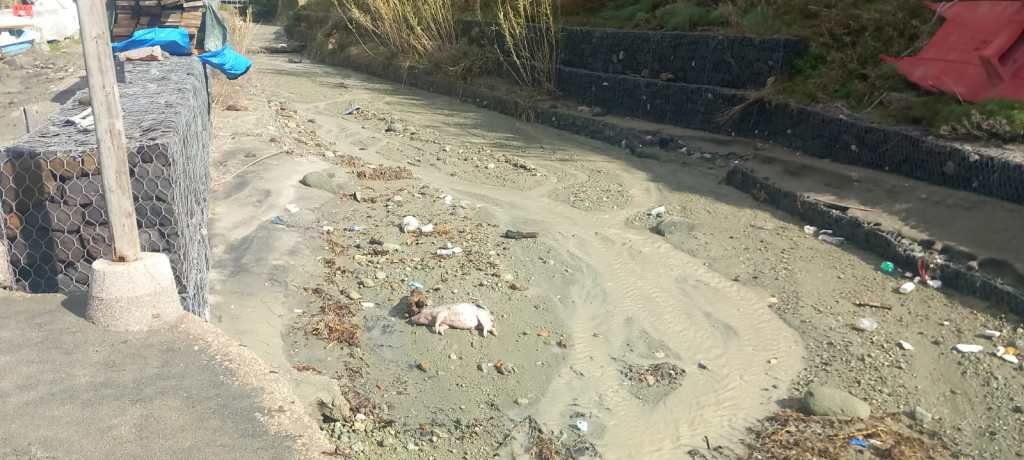 Triste ritrovamento questa mattina all’ingresso dell’alveo dell’Olmitello, sulla spiaggia dei Maronti. La carcassa di un maialino è stata rinvenuta proprio alla foce del canyon dove scorrono le acque della sorgente, probabilmente trasportata dalle acque piovane insieme al fiume di fango e detriti misto a rifiuti di ogni genere.