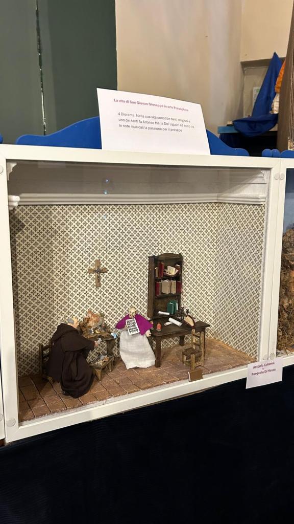 E non è tutto. Nei diorami esposti, si riconoscono subito l’Eremo dell’Epomeo, le caratteristiche “parracine” in pietra verde, i Pilastri e altri scorci dell’isola. Un viaggio attraverso le peculiarità dell’isola d’Ischia, reso ancora più suggestivo dai particolari curati con minuzia. Ma l’elemento forse più sorprendente sono le piccole teche che raccontano i momenti salienti della vita di San Giovan Giuseppe della Croce. In collaborazione con Antonio Cutaneo, Pasquale ha raffigurato vari momenti della vita del Santo: il parto di Donna Laura Gargiulo (il 15 agosto 1654, data di nascita del futuro Santo), il suo battesimo, la scelta di prendere i voti a soli 16 anni e il legame con Sant’Alfonso Maria de’ Liguori, fino ai miracoli attribuiti al Santo.