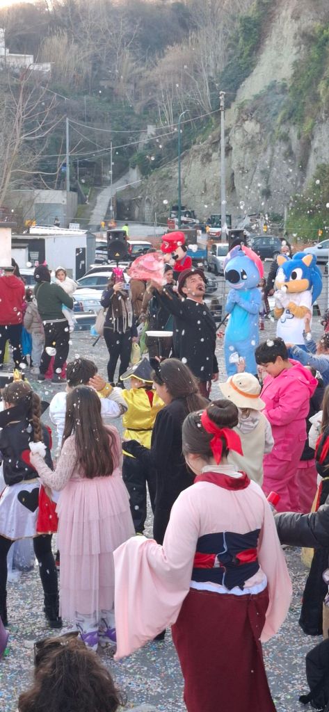 La piazza si è animata di maschere variopinte e costumi stravaganti, ma a catturare l’attenzione di tutti sono state le mascotte giganti di Super Mario e Yoshi, Sonic e Stitch. Questi amati personaggi dei cartoni animati hanno portato un tocco di magia e avventura, trasformando la festa in un vero e proprio sogno a occhi aperti.