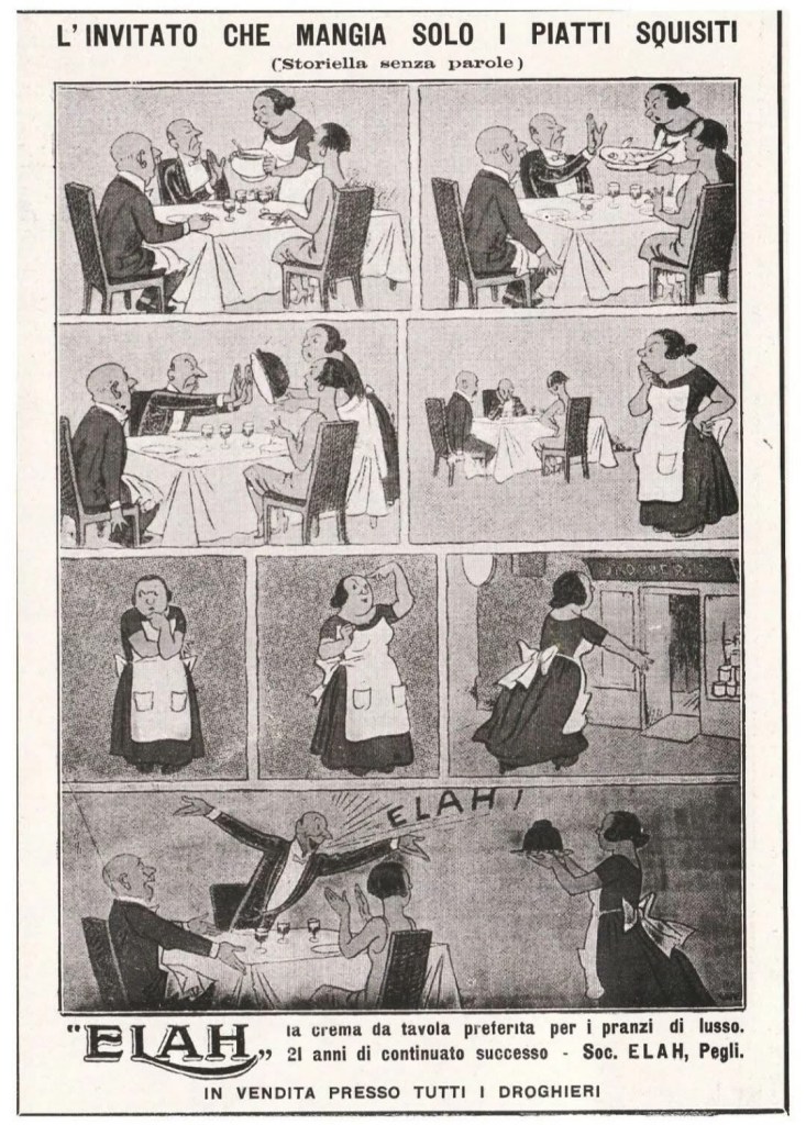 Pubblicità crema da tavola Elah, vignetta del 1928