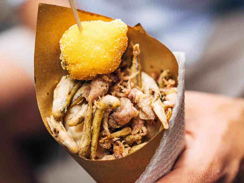 Racchiuso in un semplice cono di carta paglia, il cuoppo è un piccolo capolavoro della cucina napoletana: un tesoro di frittura croccante e dorata che sprigiona profumi irresistibili. Simbolo indiscusso dello street food partenopeo, insieme alla celebre pizza a portafoglio, il cuoppo è l’essenza della tradizione popolare: un mix sfizioso di zeppoline, panzarotti, palline di riso e pezzetti di polenta, tutti rigorosamente fritti e serviti bollenti.