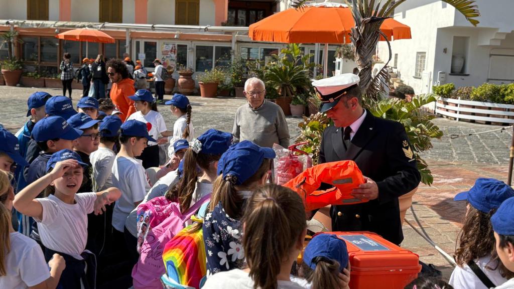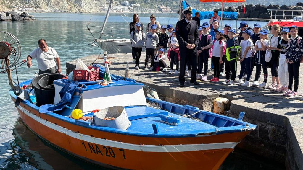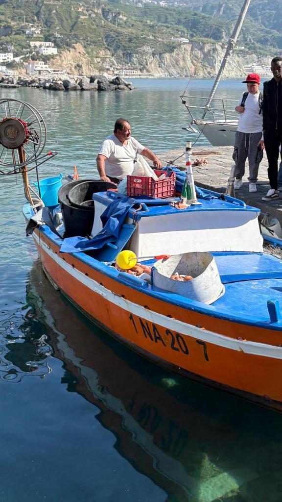Domenico Barricelli, il pescatore di Sant’Angelo meglio conosciuto come “il pellicano”, ha spiegato ai ragazzi che pescare non è solo “prendere”, ma anche proteggere. Oggi, infatti, i pescatori dell’Area Marina Protetta Regno di Nettuno sono le prime sentinelle del nostro mare, presenti e vigili tutto l’anno.