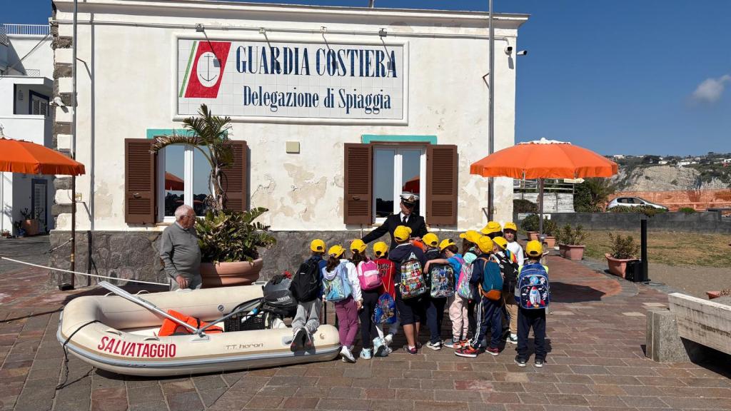 Ad accoglierli, la Guardia Costiera della Delegazione di Spiaggia di Sant’Angelo, guidata dal Comandante 1° Luogotenente NP Salvatore Buonincontro, insieme alla Sindaca Irene Iacono. Un’accoglienza calorosa, che ha dato il via a una vera e propria full immersion tra curiosità, sorrisi, scoperte e… onde del mare.