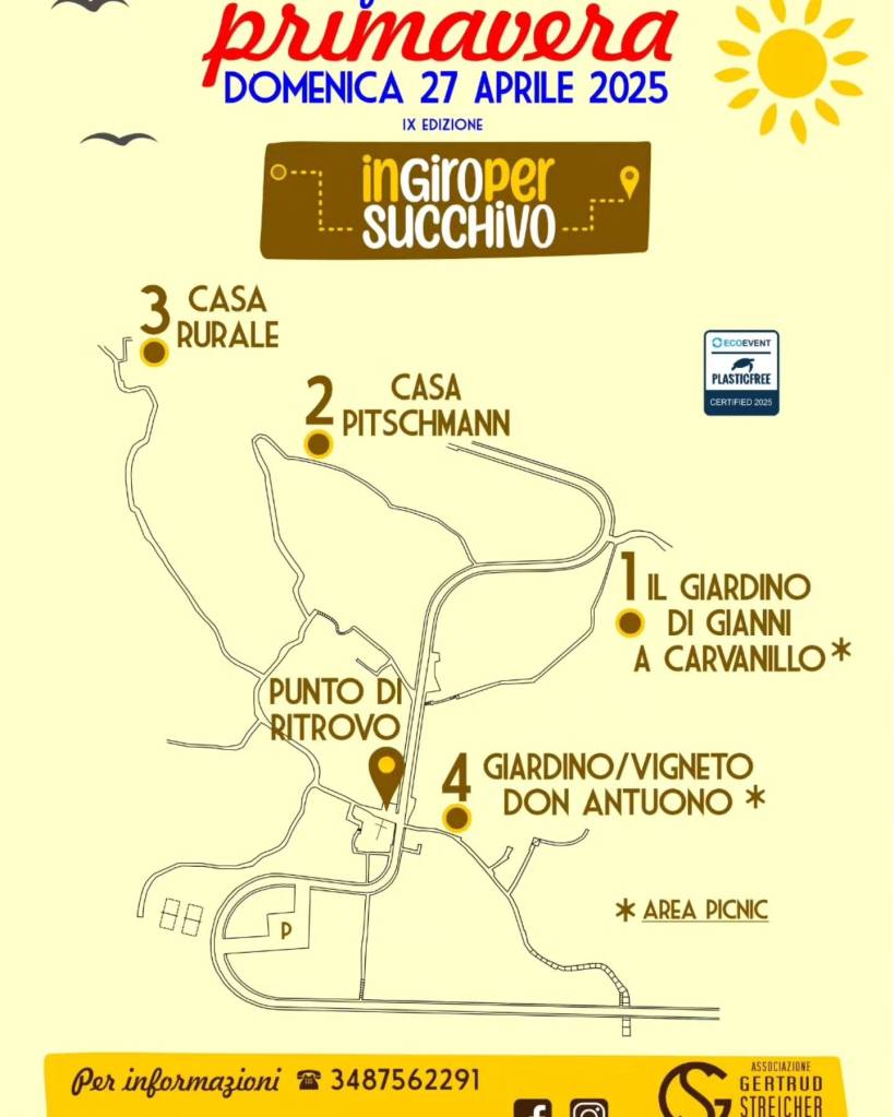 “In Giro per Succhivo” è anche eco-evento certificato Plastic Free 2025: una scelta che testimonia l’impegno degli organizzatori per la sostenibilità e il rispetto dell’ambiente.