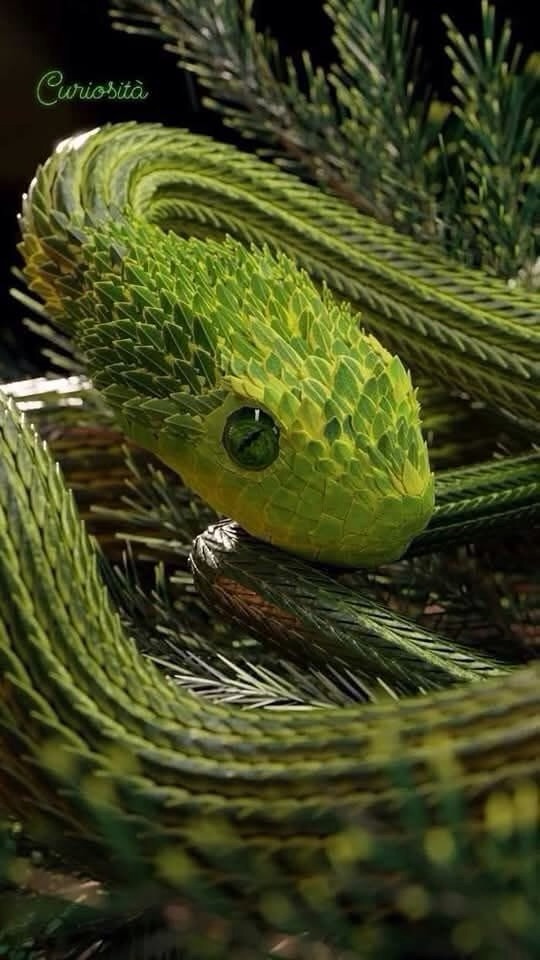 L’Atheris squamigera, conosciuta anche come vipera cespugliosa, è un serpente arboricolo dall’aspetto sorprendente, con squame iridescenti simili a foglie. Vive nelle foreste pluviali dell’Africa centrale e occidentale, mimetizzandosi perfettamente tra i rami grazie ai suoi colori vivaci. Un piccolo capolavoro della natura!