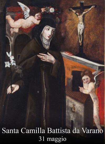 Santa Camilla Battista da Varano nacque a Camerino nel 1458, figlia naturale del principe Giulio Cesare da Varano, signore della città. Nonostante fosse nata fuori dal matrimonio, Camilla fu accolta nel palazzo paterno e cresciuta insieme ai figli legittimi, ricevendo un’educazione raffinata e un’istruzione colta, a contatto con le famiglie nobili più influenti dell’epoca.