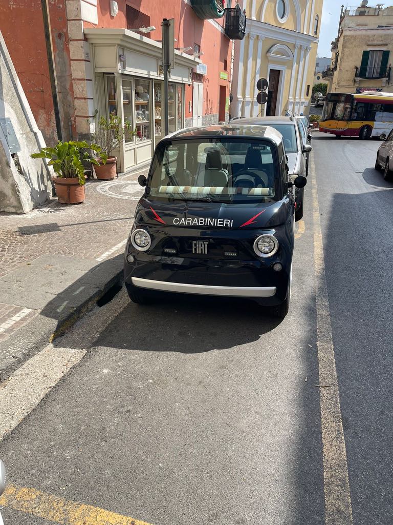 Simpatia e innovazione alla Stazione Carabinieri di Barano. Da oggi, tra i mezzi d’istituto, c’è anche la Fiat Topolino elettrica con la livrea dell’Arma, che sarà utilizzata, con molta probabilità, prevalentemente per pattugliare più agevolmente le stradine del borgo di Sant’Angelo. Con i suoi 2,53 metri di lunghezza e l’autonomia di 75 km, il quadriciclo del Gruppo Stellantis veste la divisa dei Carabinieri già da qualche mese.