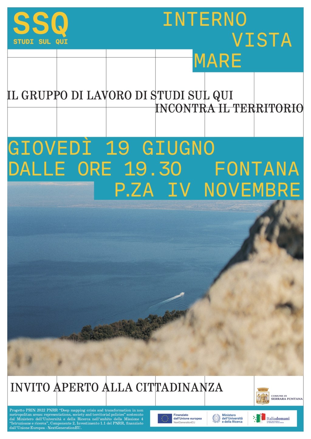 Fontana – Un’occasione da non perdere per tutta la comunità di Serrara Fontana. Giovedì 19 giugno, alle ore 19.30 in Piazza IV Novembre, si terrà un incontro pubblico con il gruppo di ricerca “Studi sul Qui”, che da alcuni giorni sta lavorando nel nostro comune per mappare in profondità il territorio, le pratiche quotidiane, le memorie e le trasformazioni in atto.