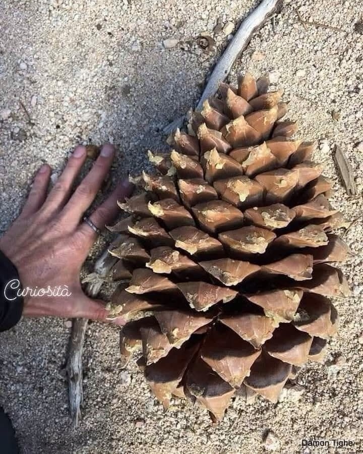 Immagina una pigna grande quanto un chihuahua… e pesante come una palla da bowling. Non è fantascienza botanica: è la pigna del pino coltro (Pinus coulteri), una conifera gigante originaria della California e del Messico.