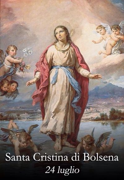 Conosciuta come “la grande martire”, Santa Cristina fu così chiamata per le tremende torture subite pur di rimanere salda nella sua fede. Il suo nome, Cristina, significa “consacrata a Cristo”, e la sua vicenda si svolge a Bolsena, nel Lazio, dove nacque da una famiglia pagana e nobile.