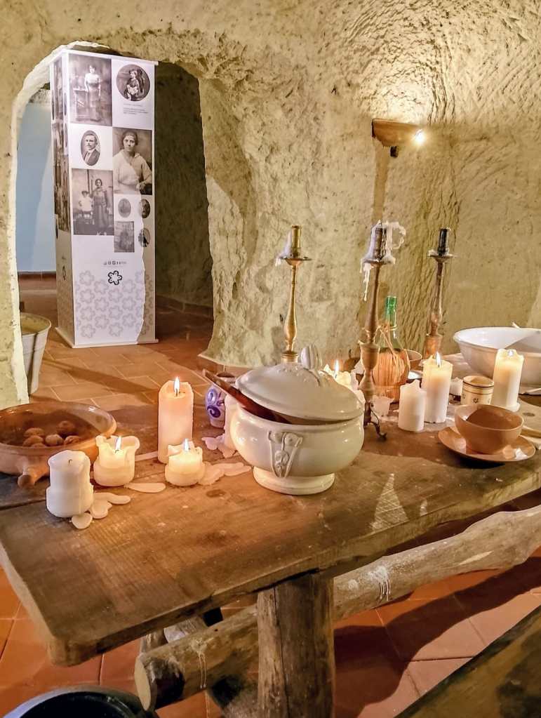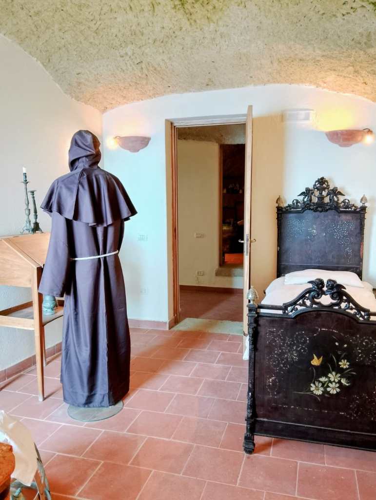 Nato nel XV secolo come modesta cappella rupestre, l’eremo è cresciuto nel tempo grazie ai frati che qui vissero dedicandosi a una vita di preghiera e lavoro nei campi. Gli interni raccontano queste penitenze: le cellette, la piccola cucina, il refettorio e uno scriptorium ripristinato fedelmente sussurrano le fatiche e le speranze di chi ha vissuto immerso nella natura isolana. Oggetti, utensili e materiali agricoli originari compongono un panorama autentico della vita contadina della zona alta di Serrara Fontana.