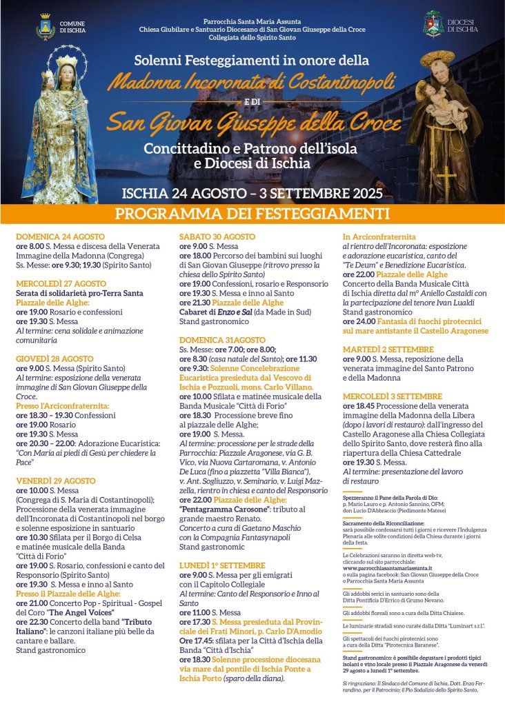 Lunedì prossimo Ischia si prepara a vivere uno dei momenti più attesi e sentiti dalla comunità isolana: la tradizionale processione via mare in onore di San Giovan Giuseppe della Croce. Un rito che, anno dopo anno, rinnova un legame profondo tra la fede del popolo e le tradizioni che da secoli segnano la vita religiosa dell’isola.