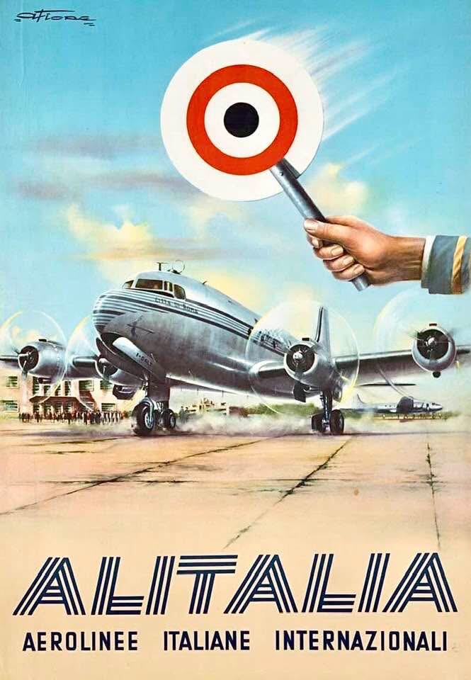 ALITALIA compagnia aerea, viaggi e turismo. 1950. Di Amleto Fiore.