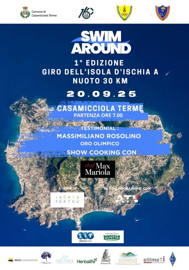 L’isola d’Ischia si prepara a vivere una giornata storica con la prima edizione di Swim Around, un evento organizzato e promosso dall’Associazione ETS IschiaForYou, in programma sabato 20 settembre 2025. Per la prima volta le acque cristalline dell’isola verde saranno teatro di un’impresa sportiva senza precedenti: il giro completo dell’isola a nuoto, una sfida lunga 30 chilometri che unisce passione, resistenza e spettacolo.