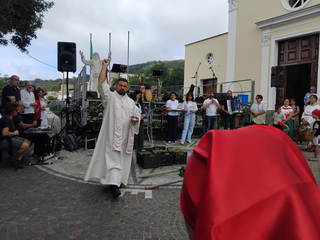 Sono proseguiti i ringraziamenti al comune per il patrocinio della festa, alla Pro loco di Serrara Fontana, alla parrocchia e ai contadini che hanno offerto l’uva per la rappresentazione della pigiatura.