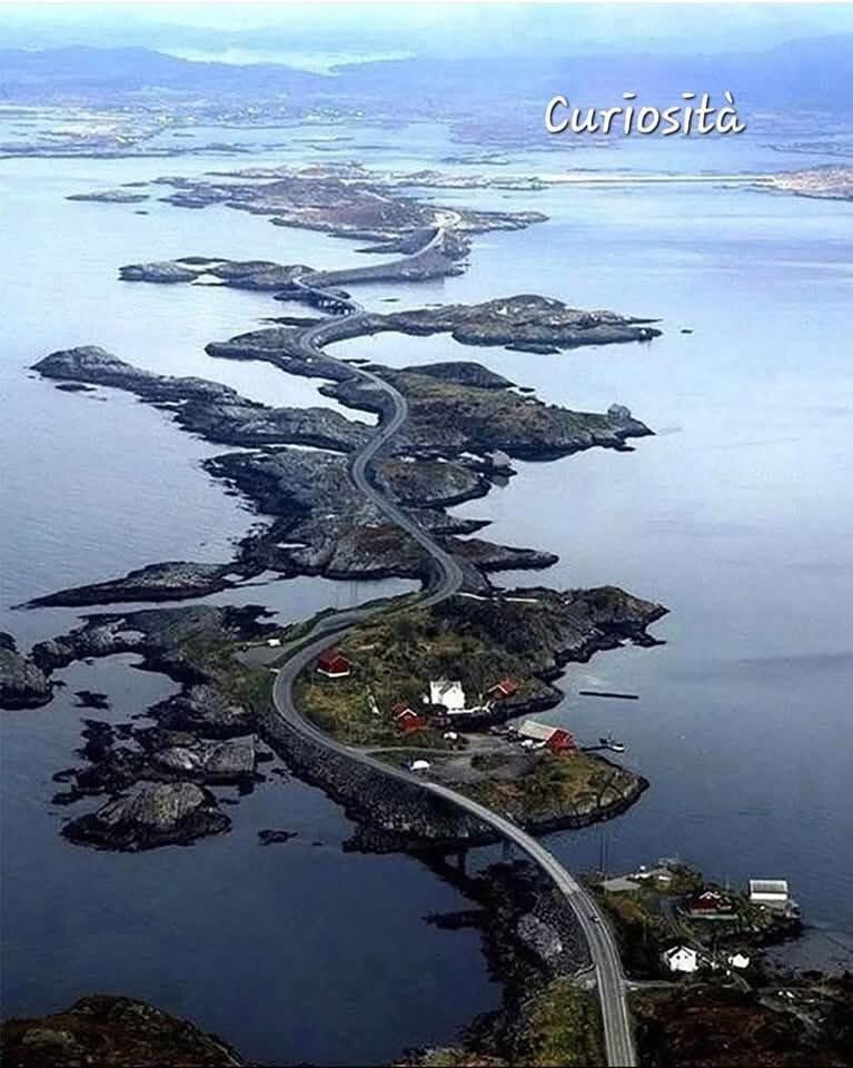 In Norvegia c’è l’Atlantic Ocean Highway, una delle strade più spettacolari (e pericolose) del mondo. Lunga 8 km, collega le isole tra Mølde e Kristiansund attraversando la baia di Hustadvika, famosa per le sue tempeste violente. Qui, tra curve mozzafiato e ponti che sfidano il mare, si può guidare sospesi tra cielo e oceano… e nei giorni di calma, ammirare persino balene e foche.