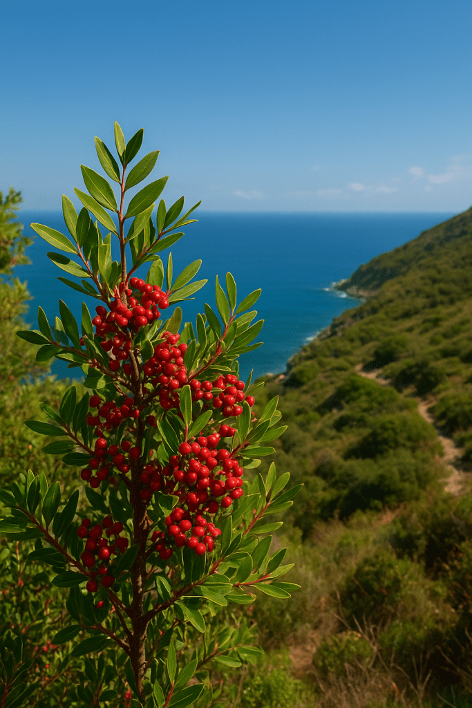 🌿 Curiosità: Dal lentisco si ricava una preziosa resina, la “mastice”, usata fin dall’antichità per profumi, medicine e liquori.