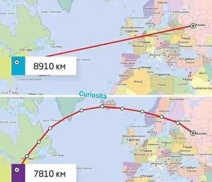 Il trucco è nelle rotte ortodromiche: la Terra è una sfera, e la linea più corta tra due punti non è una retta sulla mappa… ma un arco di cerchio! 🌍